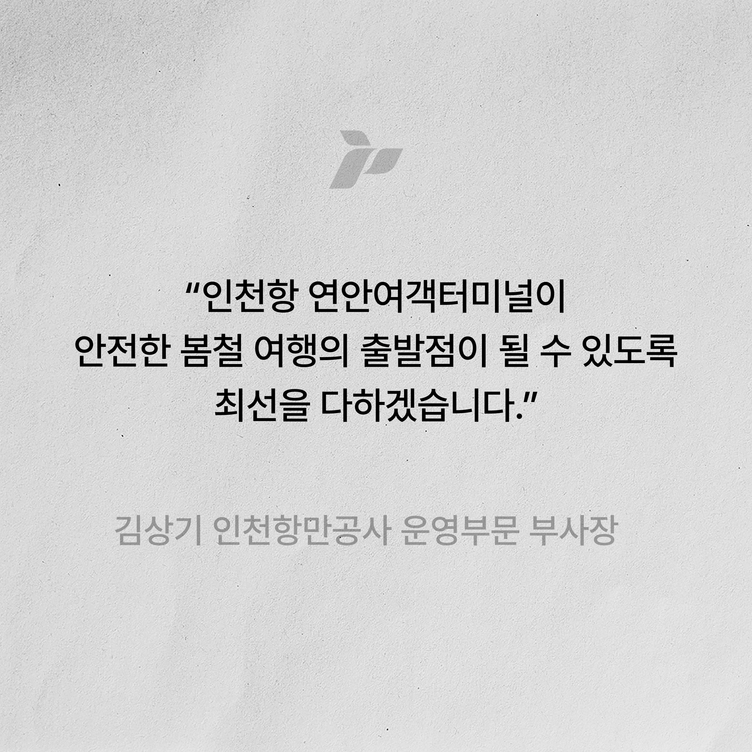 “인천항 연안여객터미널이 안전한 봄철 여행의 출발점이 될 수 있도록 최선을 다하겠다”고 말했습니다.