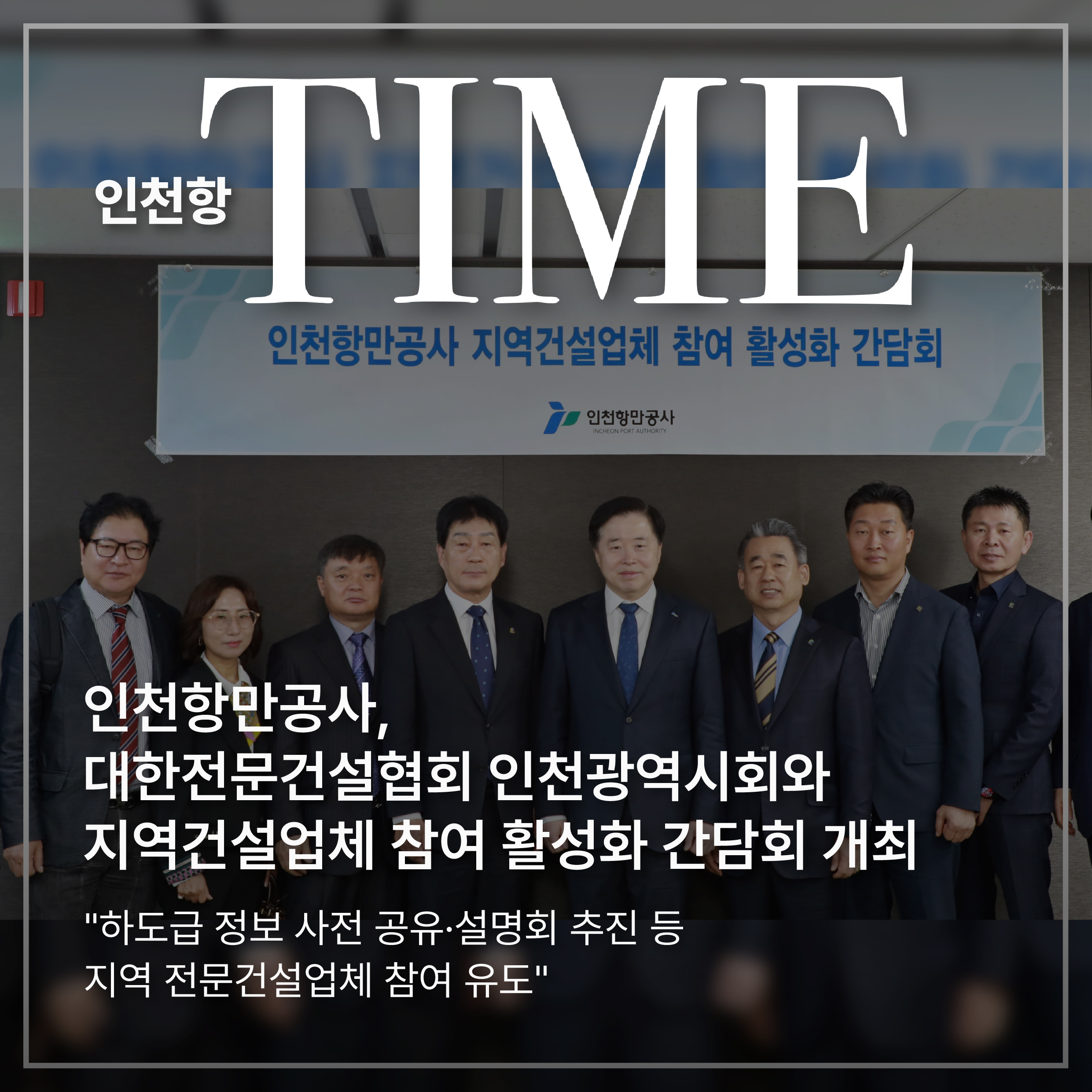 ‘지역건설업체 참여 활성화 간담회’를 개최해 인천지역 전문건설업체* 참여 확대방안을 논의했다고 밝혔습니다.