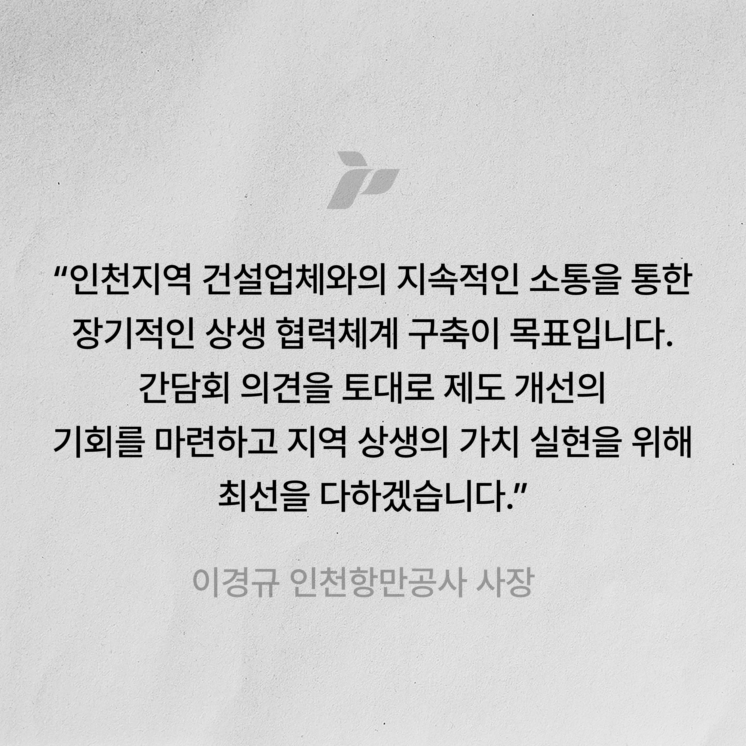 “인천지역 건설업체와의 지속적인 소통을 통한 장기적인 상생 협력체계를 구축하는 것이 목표”라며,