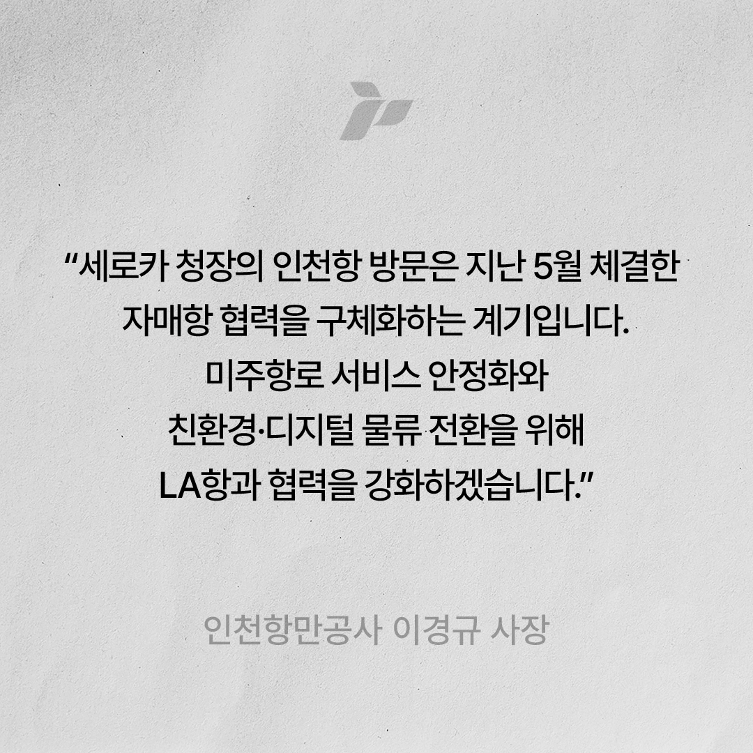 세로카 청장은 인천항만공사 이경규 사장과 3개 본부 부사장 등 임원진을 만나