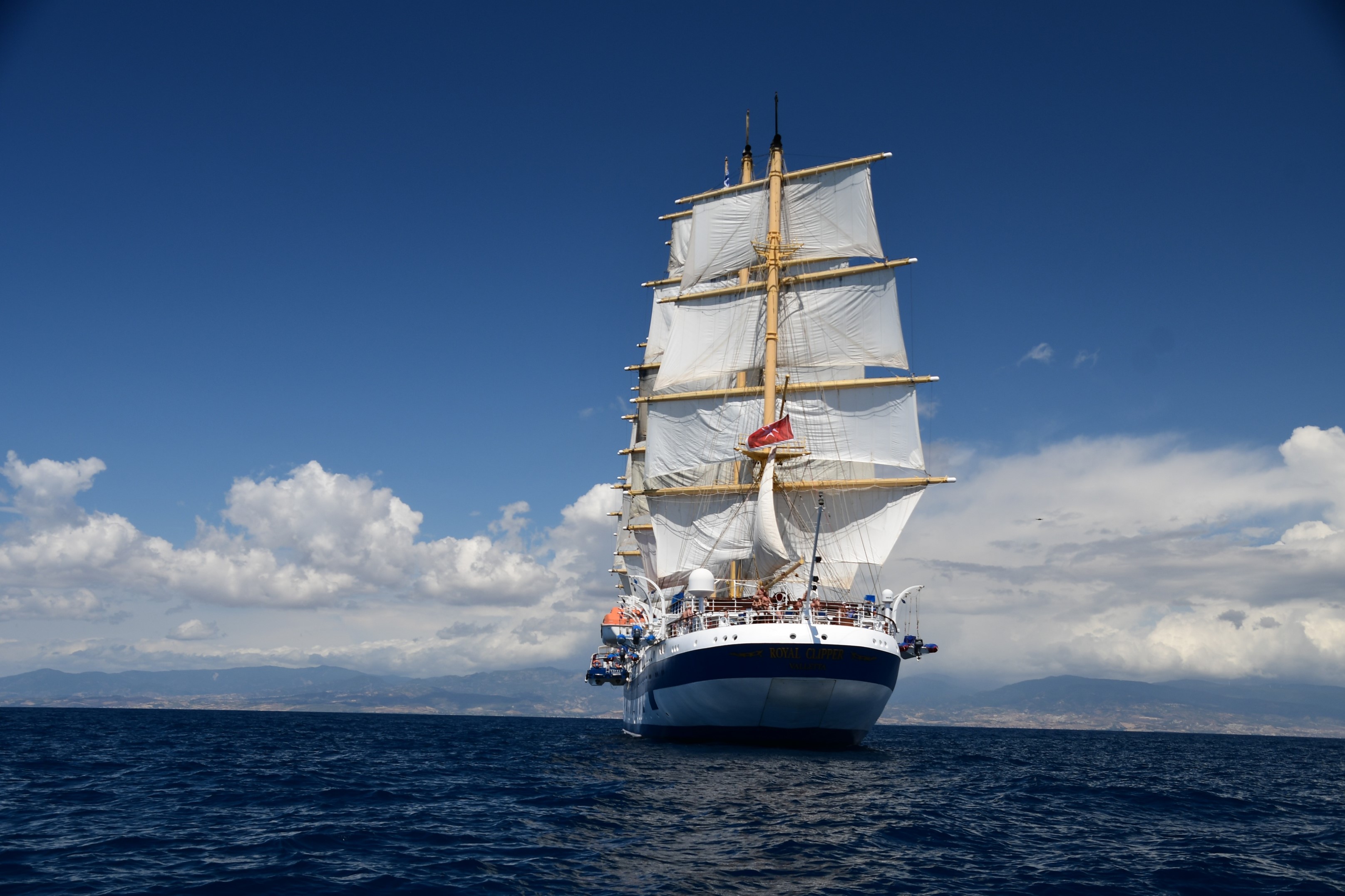 거대한 돛이 바람을 받아 움직이는 모습은 마치 바다 위에 떠 있는 살아있는 예술 작품과 같습니다.