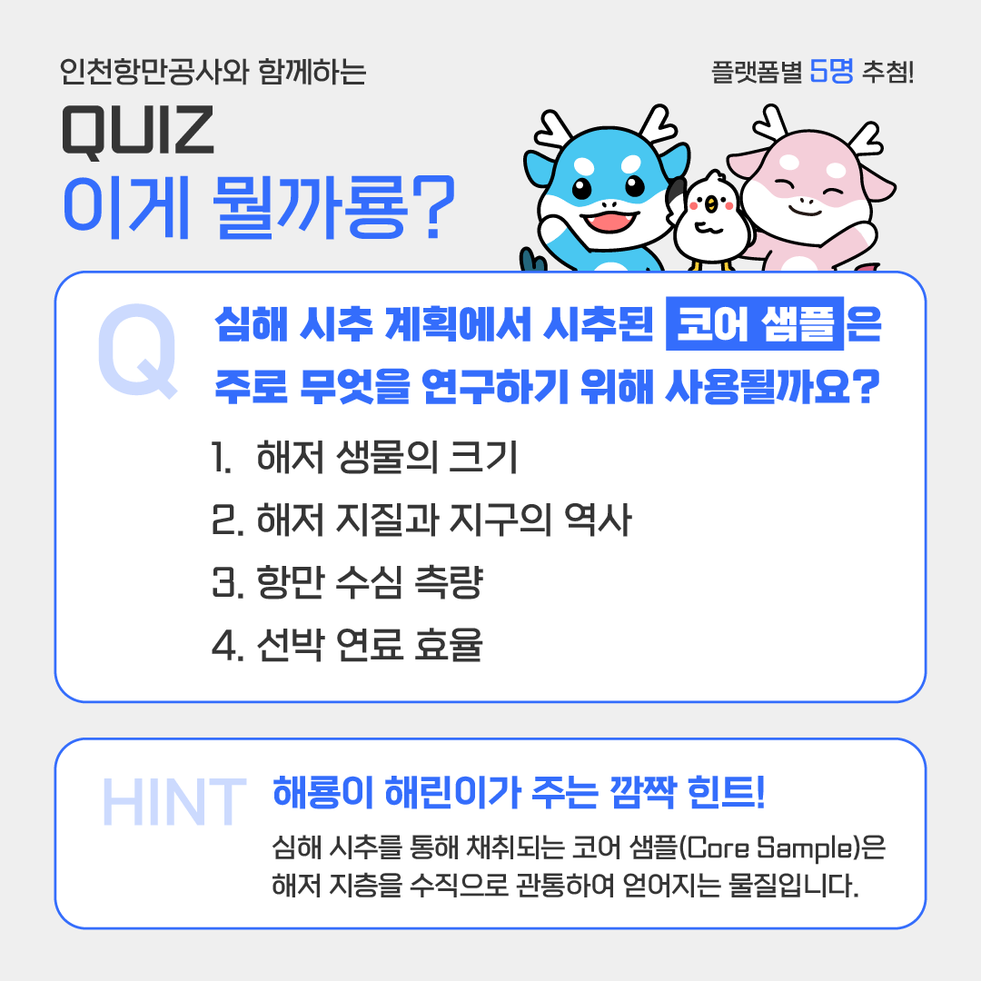 총 5분을 추첨하여 해룡이, 해린이, 해벗이가 시원한 아메리카노를 쏩니다! 😎