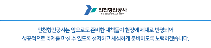 ○ 개소식에 참석한 인천항만공사 홍경선 경영부문 부사장은 “종합상황실은 축제기간 중 안전을 책임지는 중추적인 역할을 할 것으로, 준비한 대책들이 현장에 제대로 반영되어 성공적으로 축제를 마칠 수 있도록 철저하고 세심하게 준비하겠다”고 말했다.