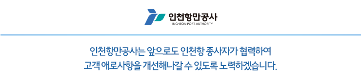 ○ 인천항만공사 남봉현 사장은 “인천항 이용 고객들의 애로사항 개선을 실천하는 인천항 종사자들의 노력에 감사드린다”면서, “앞으로도 인천항 종사자가 협력하여 고객 애로사항을 개선해나갈 수 있도록 노력 할 것”이라고 밝혔다.