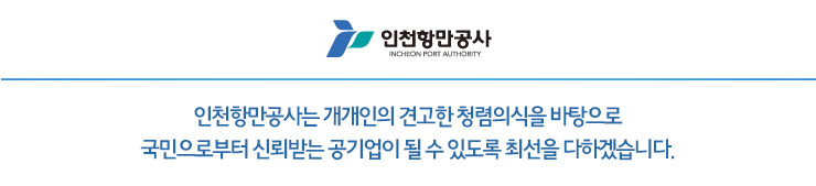 ○ 한편, 인천항만공사는 신입직원을 대상으로 진행한 ‘청렴실천 결의대회’와 더불어 ▴청렴문화 확산을 위한 캠페인 활동 ▴임직원 대상 반부패‧청렴 교육 ▴청렴의 날 지정 및 자가진단 프로그램 운영 ▴부패 및 공익신고 집중홍보 등 다양한 부패방지 활동을 통해 청렴한 인천항 조성에 힘쓰고 있다.