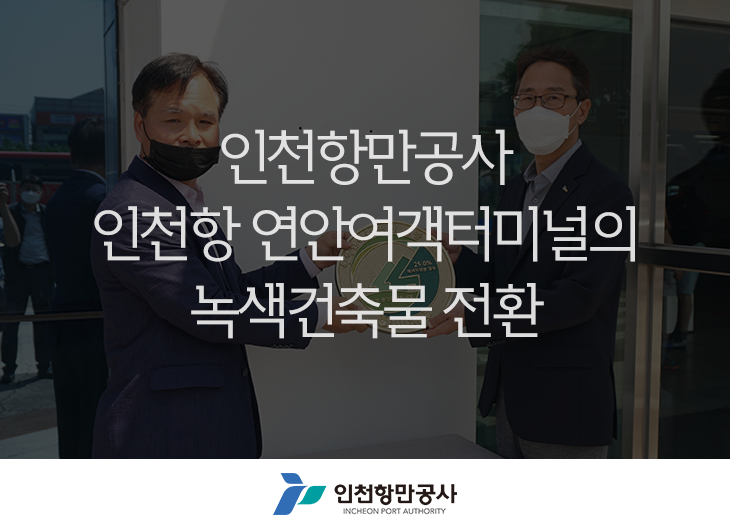 ○ 인천항만공사(www.icpa.or.kr, 사장 최준욱)는 인천항 연안여객터미널이 한국시설안전공단으로부터 녹색건축물 전환 인증을 받음에 따라, 녹색건축물 인증을 표시하는 동판(국토교통부 발급)을 부착하는 행사를 개최했다고 밝혔다.