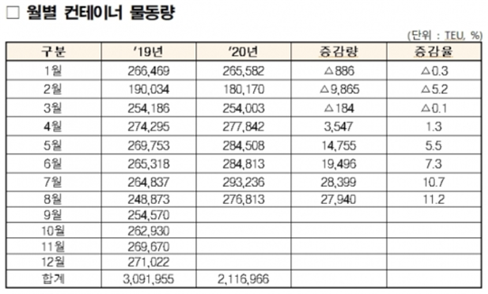 | 코로나 사태 와중에도 증가한 인천항 물동량 (0) | 2020.11.01 |
