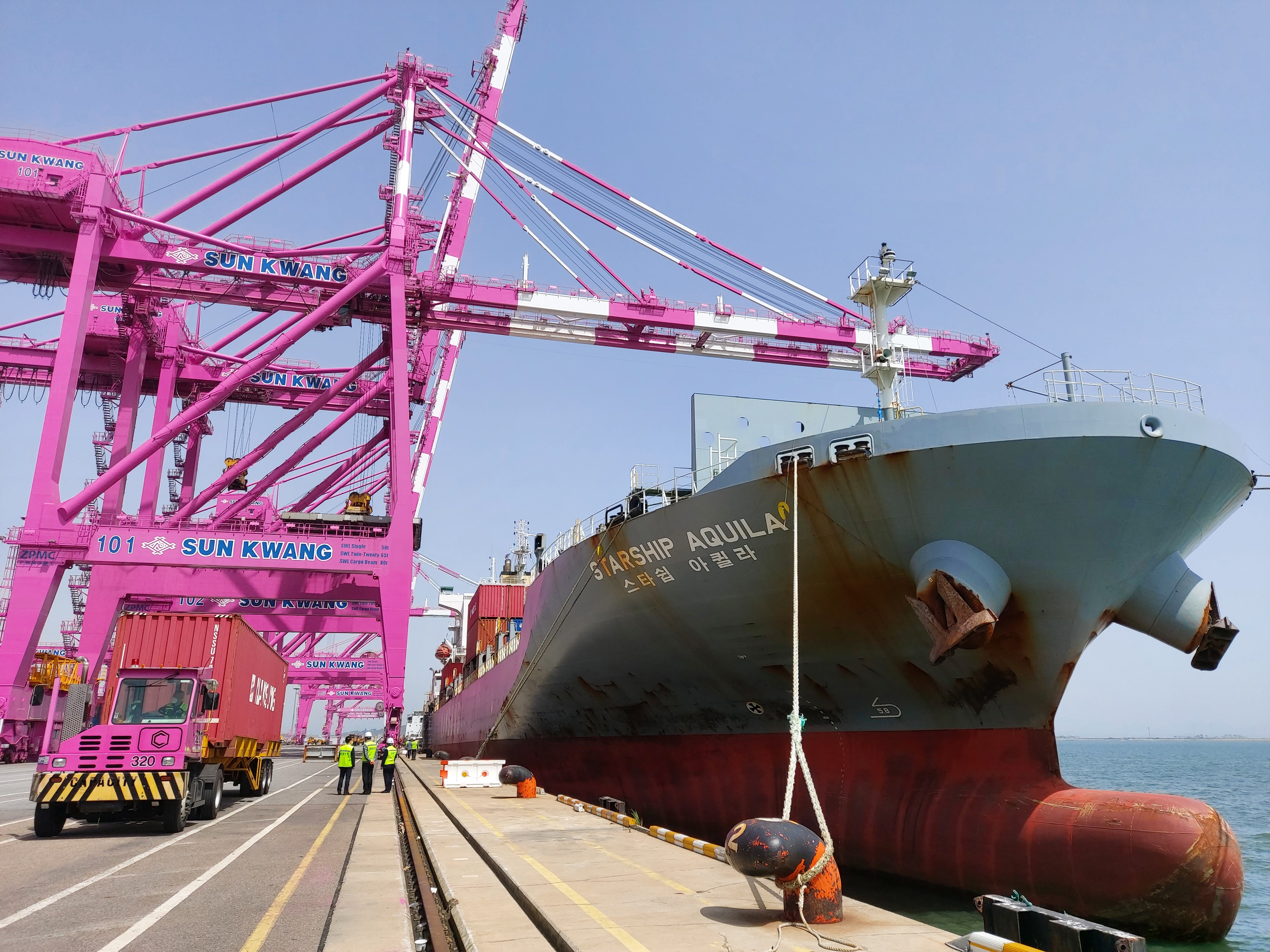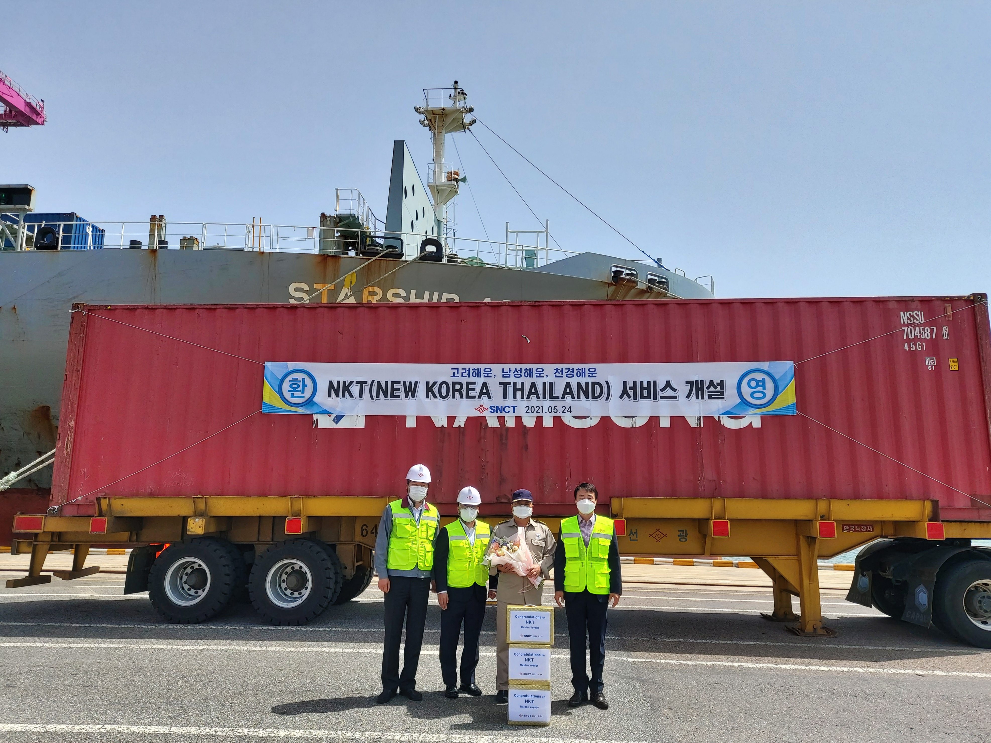 국적선사 고려해운, 천경해운, 남성해운의 ‘NKT’는 5월 24일부터 운영을 시작하였는데요. 신규 서비스 ‘NKT’에 투입된 스타쉽 아퀼라호(Starship Aquila)는 24일 선광신컨테이너터미널(SNCT)에 첫 입항했답니다. 고려해운, 천경해운, 남성해운 상호간에 1,500~1,600TEU급 선박 3척을 투입하여 인천-광양-부산-홍콩-세코우-람차방-방콕-람차방-호치민-인천에서 기항하며, 주 1회 서비스됩니다.