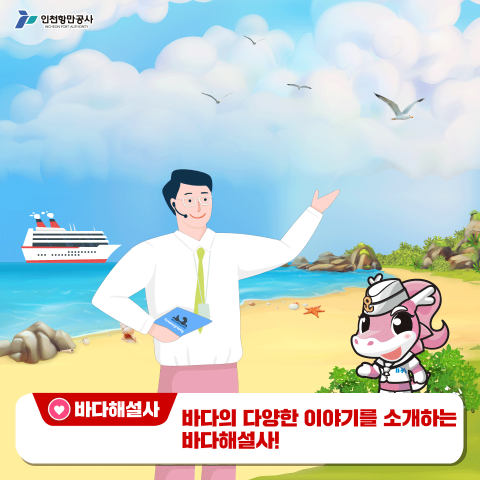 어촌과 바다를 사랑하는 사람이라면 꿈꿀 수 있는 ‘바다해설사’! 바다해설사는 어촌과 바다의 관광·문화자원 등을 안내하는 해설직업입니다. 바다해설사는 관광객에게 바다와 어촌에서 할 수 있는 다양한 체험을 제공하고, 흥미로운 이야기를 전달하여 어촌과 바다에 흥미를 갖게 하는 것이 궁극적인 목적이랍니다.