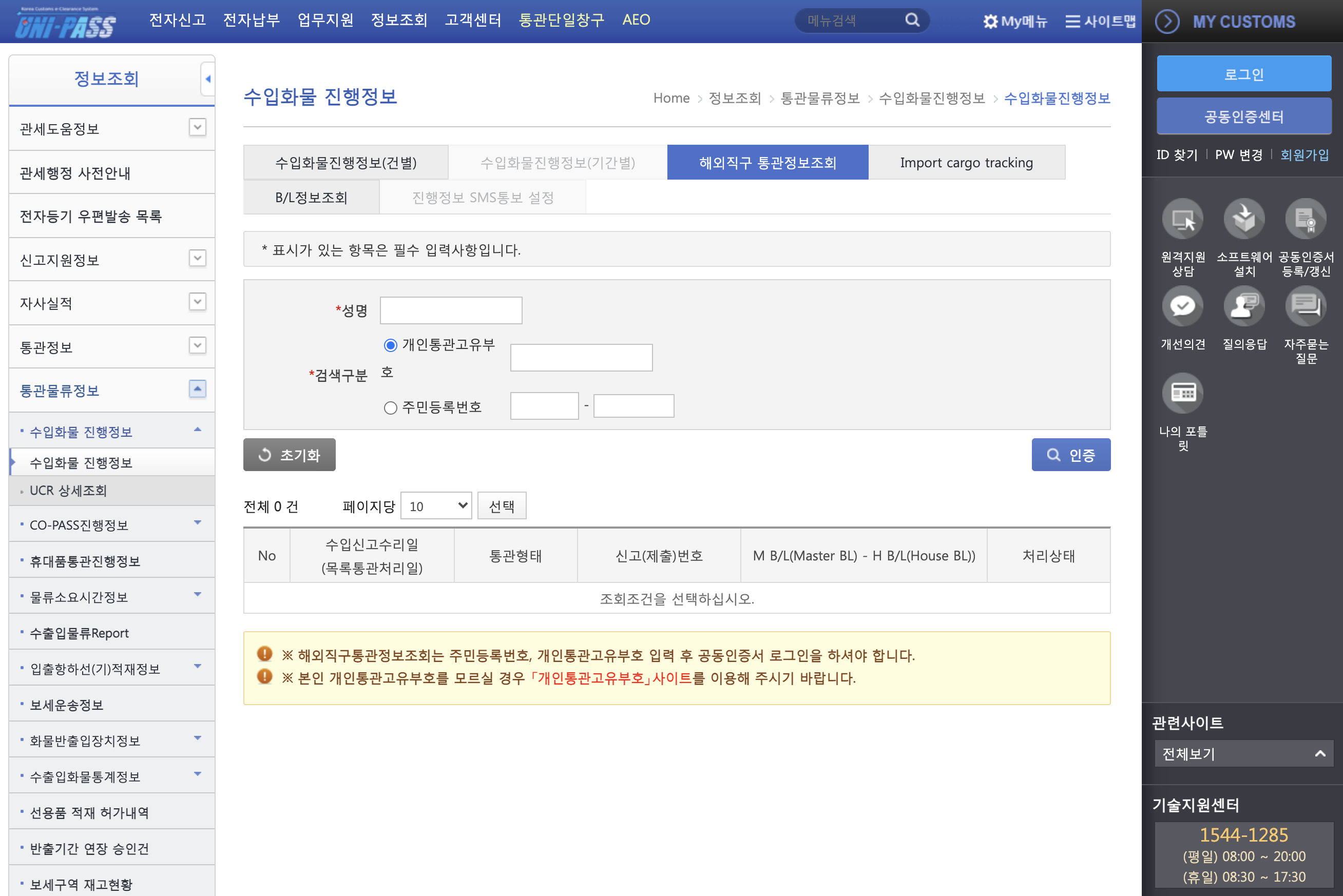 3. 해외직구 통관정보조회
