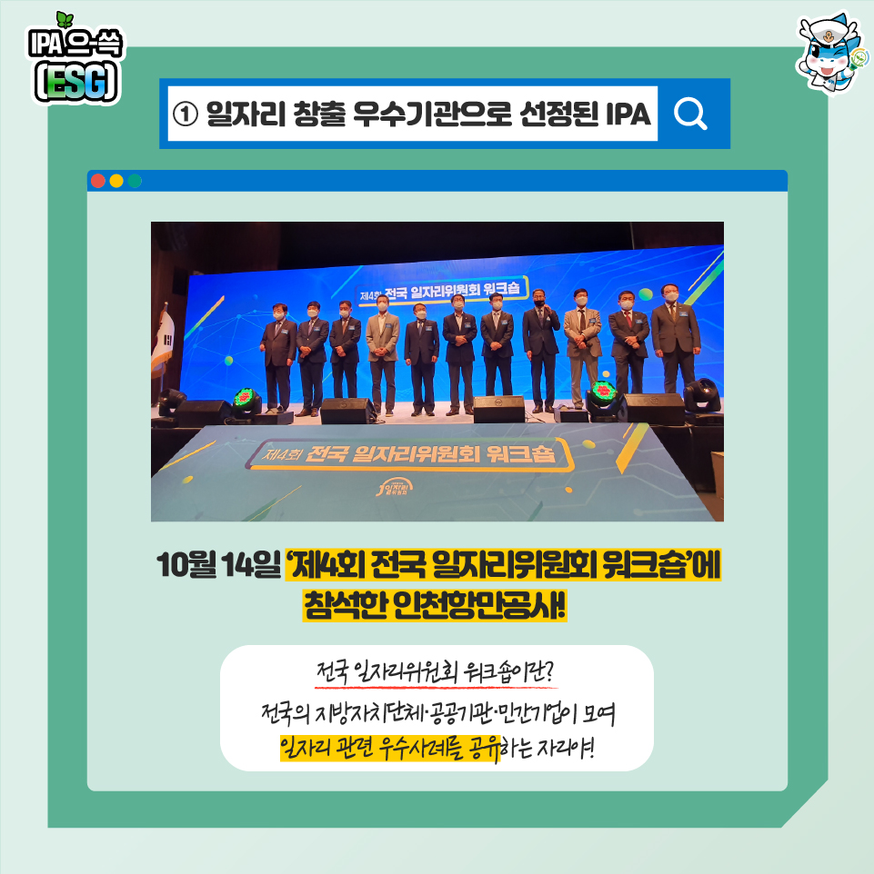 ② 공공기관 부문 일자리 창출 우수사례로 선정된 인천항만공사