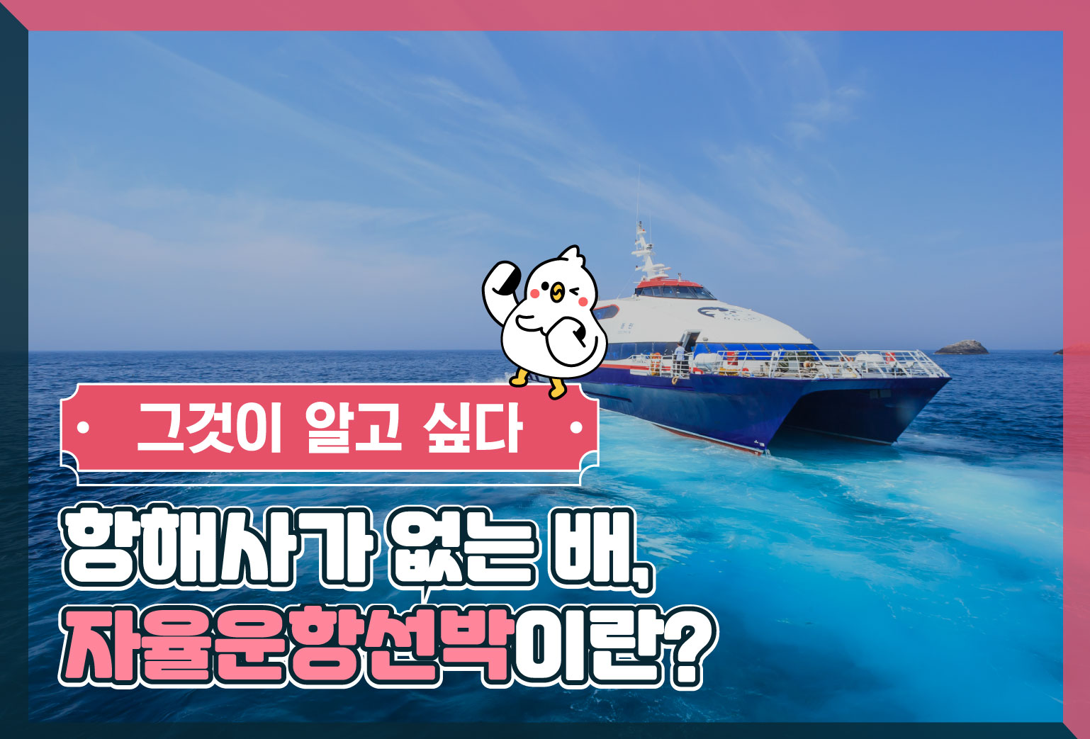 그래서 오늘은 바다 위에서 스스로 항해할 수 있는 능력을 갖춘 ‘자율운항선박’에 대해 배워보려고 합니다. 함께 알아볼까요?그래서 오늘은 바다 위에서 스스로 항해할 수 있는 능력을 갖춘 ‘자율운항선박’에 대해 배워보려고 합니다. 함께 알아볼까요?