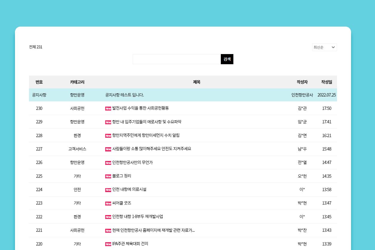 참여자의 편의성을 높이기 위해 단어(키워드)로 게시판 제안내용을 검색하는 기능을 추가했으며,