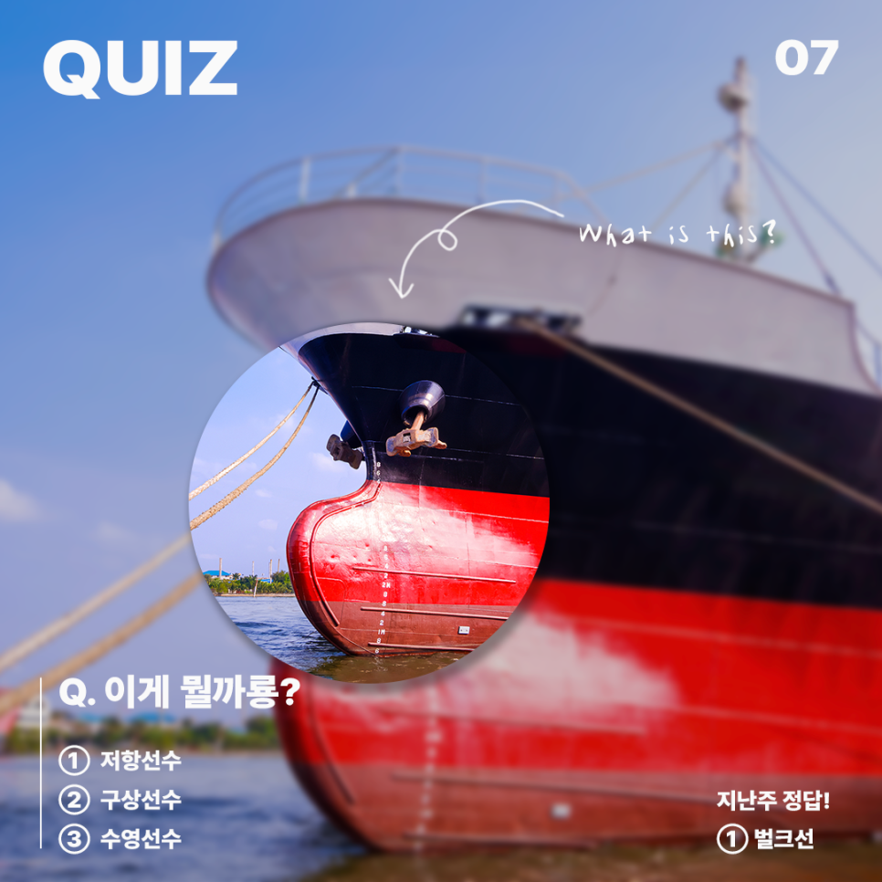 선박이 나아갈 때 생기는 저항을 줄이기 위해 있어룡! 공처럼 둥글지룡?