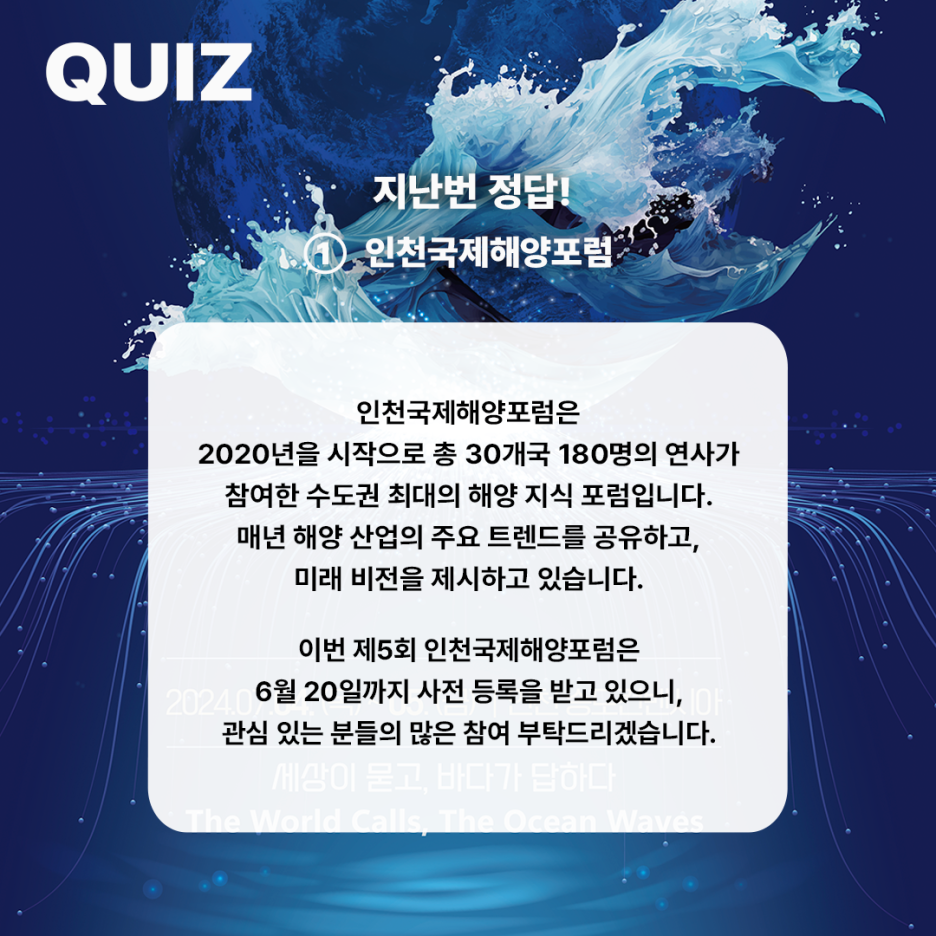 | [Quiz! 이게 뭘까룡?] 현재 인천항만공사에서 진행 중인 스탬프 투어의 이름은? (35) | 2024.06.17 |